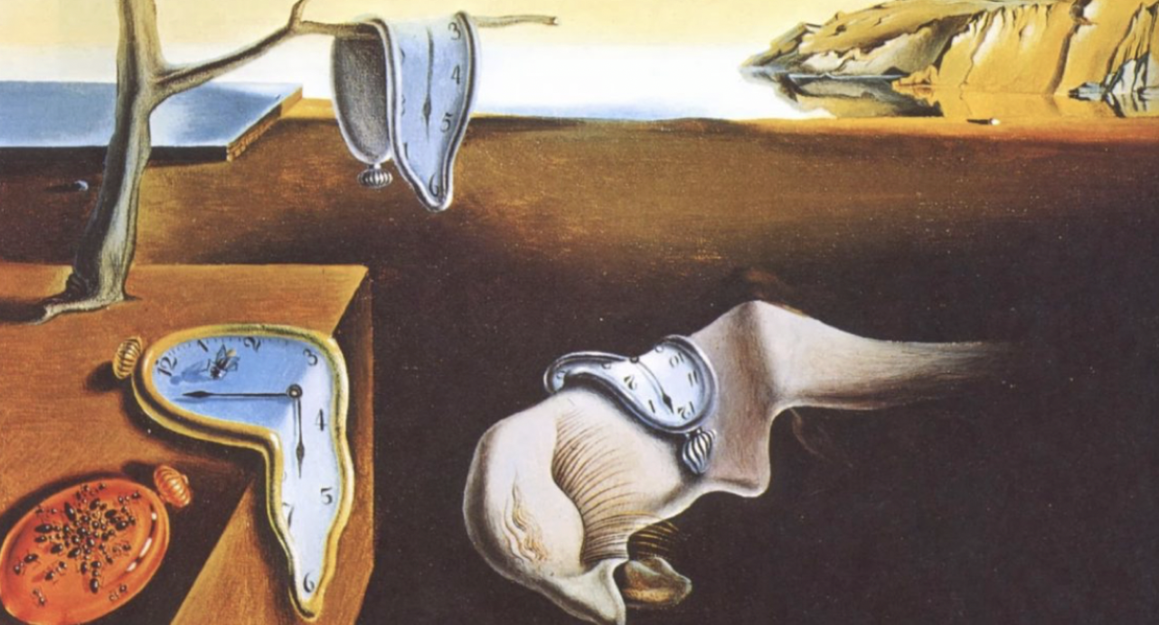 Laden with recurring symbolic elements like melting clocks, representing themes of time and decay.